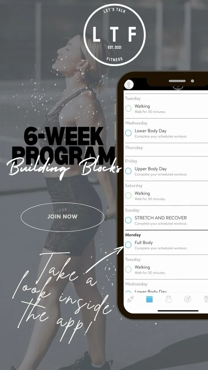 Access to the LTF App which will host your custom workouts and ability to track and communicate with Coach Gabby.